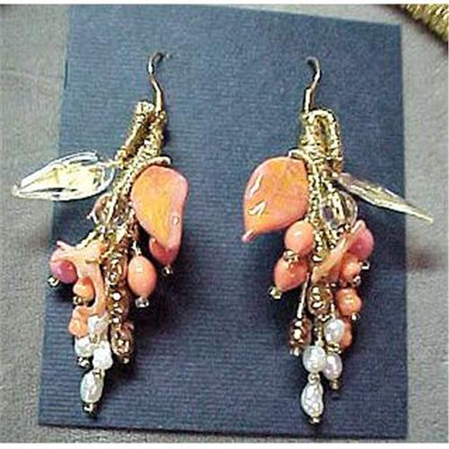 One of a kind Murano glass Coral color and pearls dangle earrings by artist Cesare Sent