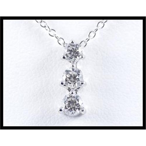 Superb workmanship makes this pendant unrivaled in shine and beauty. 3 brilliant cut diamonds weighing approximately 0.50 carats total weight are set in 18K white gold. The pendant measures 13 millimeters (1/2 inches) x 5 millimeters (3/16 inches) and comes with an 18K white gold link chain that is 18 inches long and weighs 2.50 grams.