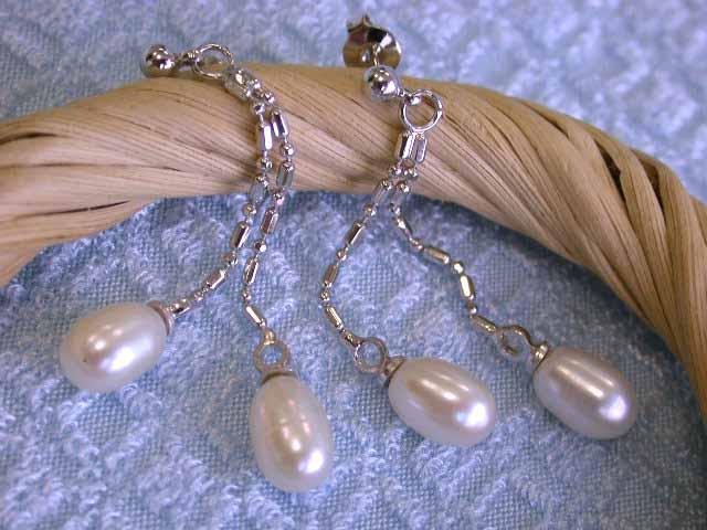 Silver w/ Pearl Earrings approximately 1.25 inches to 1.5 inches long.