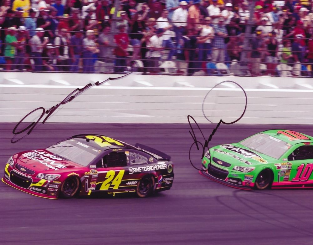 Photograph measures 8" x 10" in size and has been hand-signed by both Danica Patrick and Jeff Gordon. Autographs include a Pristine Auction LOA and lifetime guarantee for authenticity purposes.