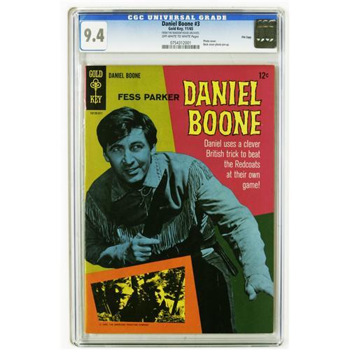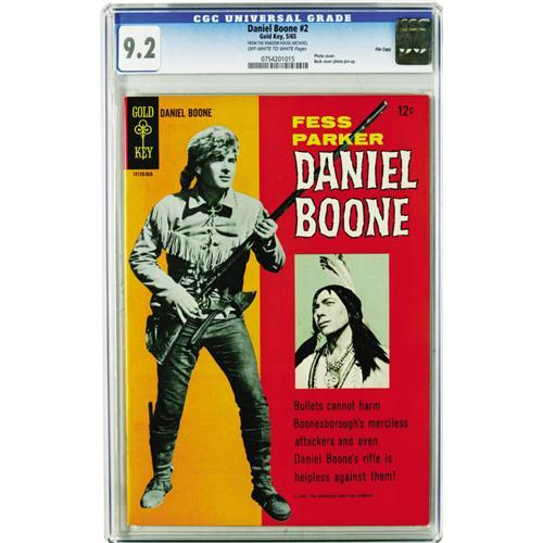 <B>Daniel Boone File Copies CGC Group (Gold Key, 1965-69).</B></I> All comics in this group are CGC 9.4 unless otherwise noted; all have "off-white to white" page quality unless otherwise noted. Included here are #2 (CGC 9.2; CGC census 3/06: 2 in 9.2, none higher), #3 (1 in 9.4, none higher), #5 (2 in 9.4, none higher), #6 (CGC 9.2 with off-white pages; 2 in 9.2, 6 higher), #7 (1 in 9.4, none higher), #11 (4 in 9.4, 1 higher), #13 (1 in 9.4, 1 higher), and #15 (5 in 9.4, 5 higher). Overstreet 2006 NM- 9.2 value for group = $380. <I>From the Random House Archives.</B></I>