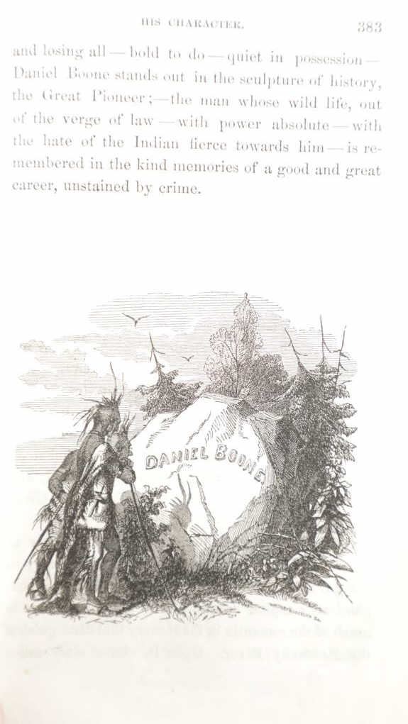 For your consideration is a Rare 1854 First Edition of "Daniel Boone and the Hunters of Kentucky" by W. H. Bogart, publishers Miller, Orton & Mulligan, Auburn and Buffalo. William Henry Bogart's (1810-1888) "Daniel Boone and the Hunters of Kentucky” is a fascinating account of wilderness life in the American west (i.e. Kentucky). And while the biographical information on the life of Boone is important, this book is most desirable for the accounts of Native American Indian tribes, their treaties with America, and of course, notes on battles and wars between Indians and the United States. This work also covers Boone's role in the Revolutionary War and his interactions Generals Lafayette and George Washington. Daniel Boone was an American pioneer and frontiersman whose exploits made him one of the first folk heroes of the United States. He became famous for his exploration and settlement of Kentucky, which was then beyond the western borders of the Thirteen Colonies. This brown cloth bound gold gilt stamped hardcover is in fair to good condition, gold gilt titling on spine is clean, scuffing noted to cover edges, separation at top of spine. Intact pages exhibit age tanning and slight foxing throughout. Measures 5.25"W x 7.75"L x 1"D.
