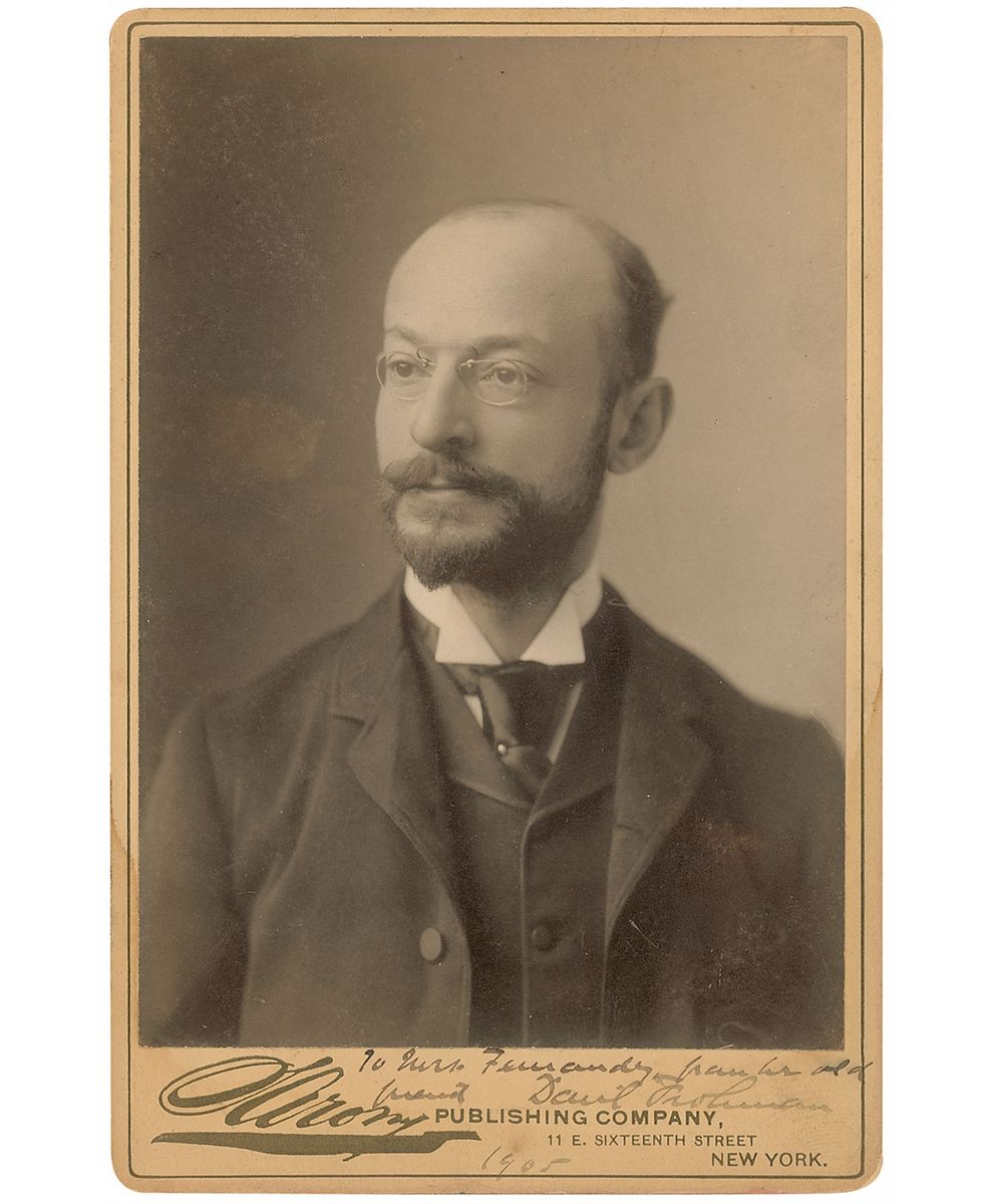 Jewish American theatrical producer and manager (1851–1940), and an early film producer with Adolph Zukor in the Famous Players Film Company. Original 4.25 x 6.5 cabinet photo by Sarony, signed and inscribed in the lower border in black ink, “To Mrs. Fernandez from her old friend, Daniel Frohman 1905.” In fine condition, with some scattered light soiling to borders .
