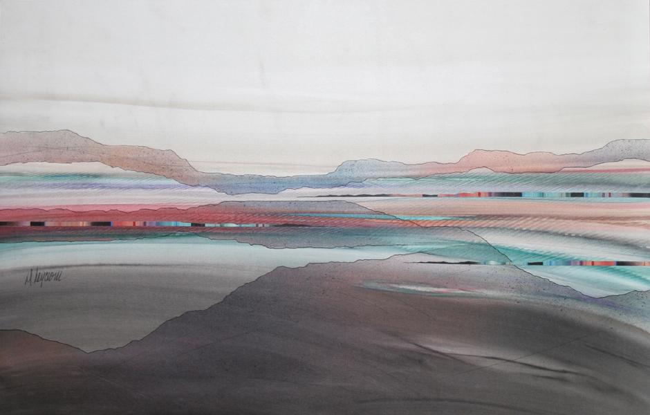 Medium: Ink, Oil and Collage on Canvas, signed left