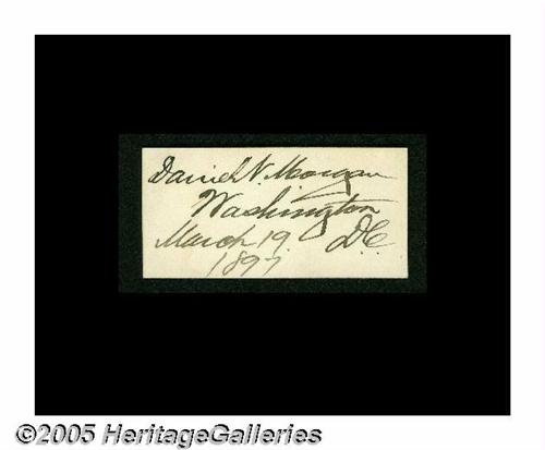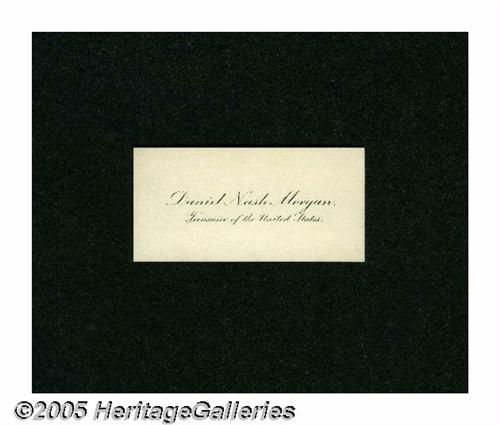 <B>Daniel Morgan Signature Card.</B></I> Daniel Morgan has signed on the back of his US Treasurer's business card "Daniel N. Morgan Washington D. C. March 19, 1897."