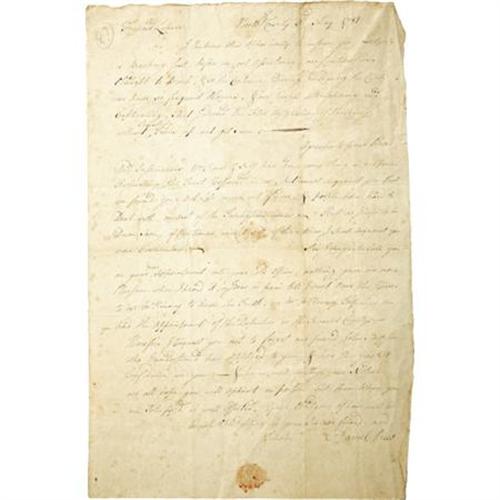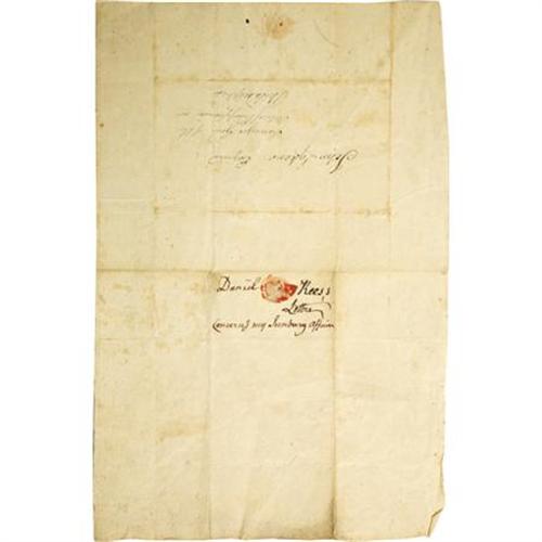 <B>American Revolution on the Pennsylvania Frontier - Daniel Rees Autograph Letter Signed.</B></I> 1 page, 8" x 12.5" Sudury "<I>North</B></I> umberlan <I>d</B></I> <I>County</B></I>" Pennsylvania. May 3, 1781 with integral address leaf to "<I>John Lukens Esquire Lawyer Gen. of the state of Pennsylvania in Philadelphia.</B></I>" He writes to "<I>Friend Lukens,</B></I>" In part: "<I>I embrace this opportunity to inform you, our county is breaking fast, before we got assistance our frontiers were obliged to break, and so we continue driving up leaving the county we have so frequent alarms, & our people a butchering and captivating, that I dread the total destruction of the county without something turns up and not get seen...</B></I>" Fortunately for Rees and Lukens, the victory of Yorktown would finally turn the tide in favor of the American cause, after years of disappointing campaigns and economic devastation. The Pennsylvania and New York frontiers in 1781 were alive with alarms warning of loyalist and Indian attacks. Years of raids by loyalists and their Indian allies caused many to abandon frontier settlements. Light foxing usual folds, else very good. <I>Ex. Henry E. Luhrs Collection.</B></I><BR><BR><BR><b>Shipping:</b> Flat Material, Small (<a target="_blank" href="http://www.heritageauctions.com/common/shipping.php">view shipping information</a>)
