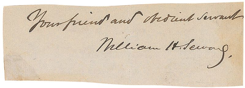 Ink signatures, “Dan’l Webster” and “Your friend and obedient servant, William H. Seward,” on clipped slips affixed to opposing sides of a 6 x 7.5 album page; they are placed such that the page could be cut in half to separate the two. In fine condition.