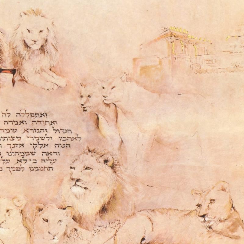 "Daniel's Prayer" is a mixed media giclee on handmade Indian paper with goldleaf by Brachi Horen, hand signed by the artist! This creation received personal attention by the artist in the form of water coloring and gilding. Includes Certificate of Authenticity! Measures approx. 23" x 15.5" (with border), 19" x 13" (image).