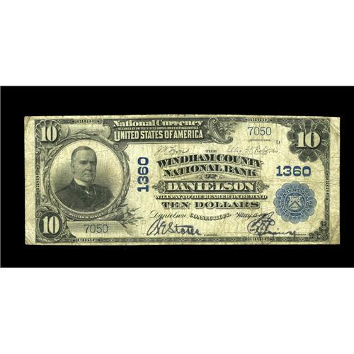 <B>Danielson, CT</B></I> - $10 1902 Plain Back Fr. 624 <B>The Windham County NB</B></I> Ch. # 1360<BR>A decent example with good signatures and body for the grade. <B>About Fine.</B></I>