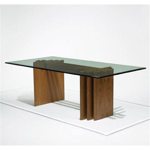 84 w x 42 d x 29 h inches<BR><BR>Condition: Small surface abrasions and impressions to base from contact with chairs. Glass is of indeterminate age, showing several scratches and one small scallop flake to side. Fine condition overall.