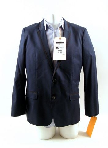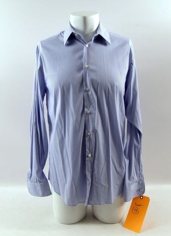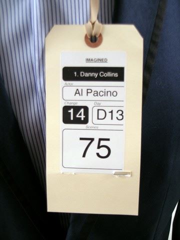Danny Collins (Al Pacino) screen worn, hero, blue linen two button with black lining on the color 'High Society' sport coat, and light blue with dark blue pinstripes 'Armani' dress shirt. Includes wardrobe tag!