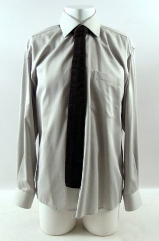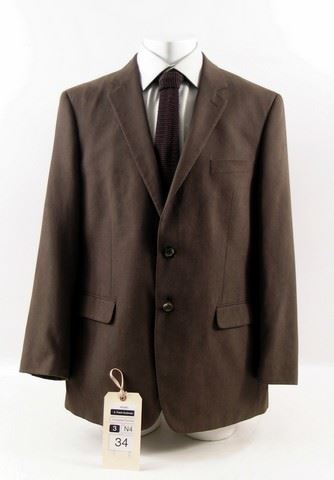 Frank Grubman (Christopher Plummer) screen worn, hero, brown two button long sleeve 'Andrew Fezza' jacket, (size 44R) ice grey self diamond pattern long sleeve button front 'Gordon Mitchell' shirt, (size 16 1/2 - L) and deep chocolate brown knit 'Charvet' neck tie. Includes wardrobe tag!