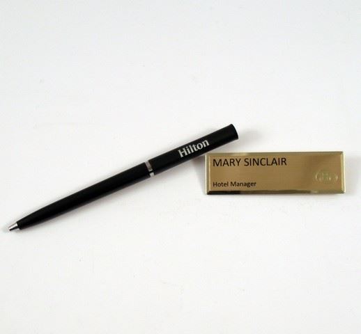 Mary Sinclair (Annette Bening) screen used, hero, Hilton Hotel Manager name tag with pin back and black Hilton pen.