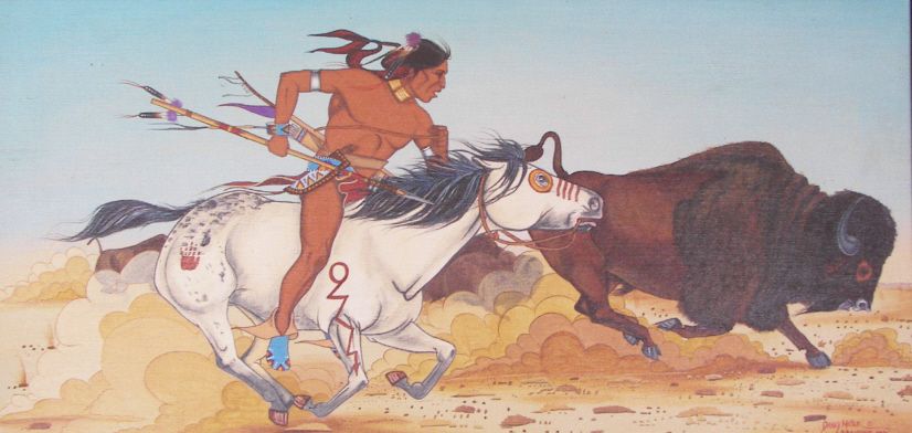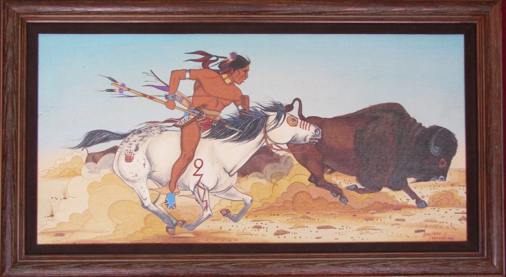 , Danny Miller, Eba Eyut Abbi , Oil on Canvas , Buffalo Hunt Scene , 12" x 24" , Signed Lower Right , 1981 , (5421)