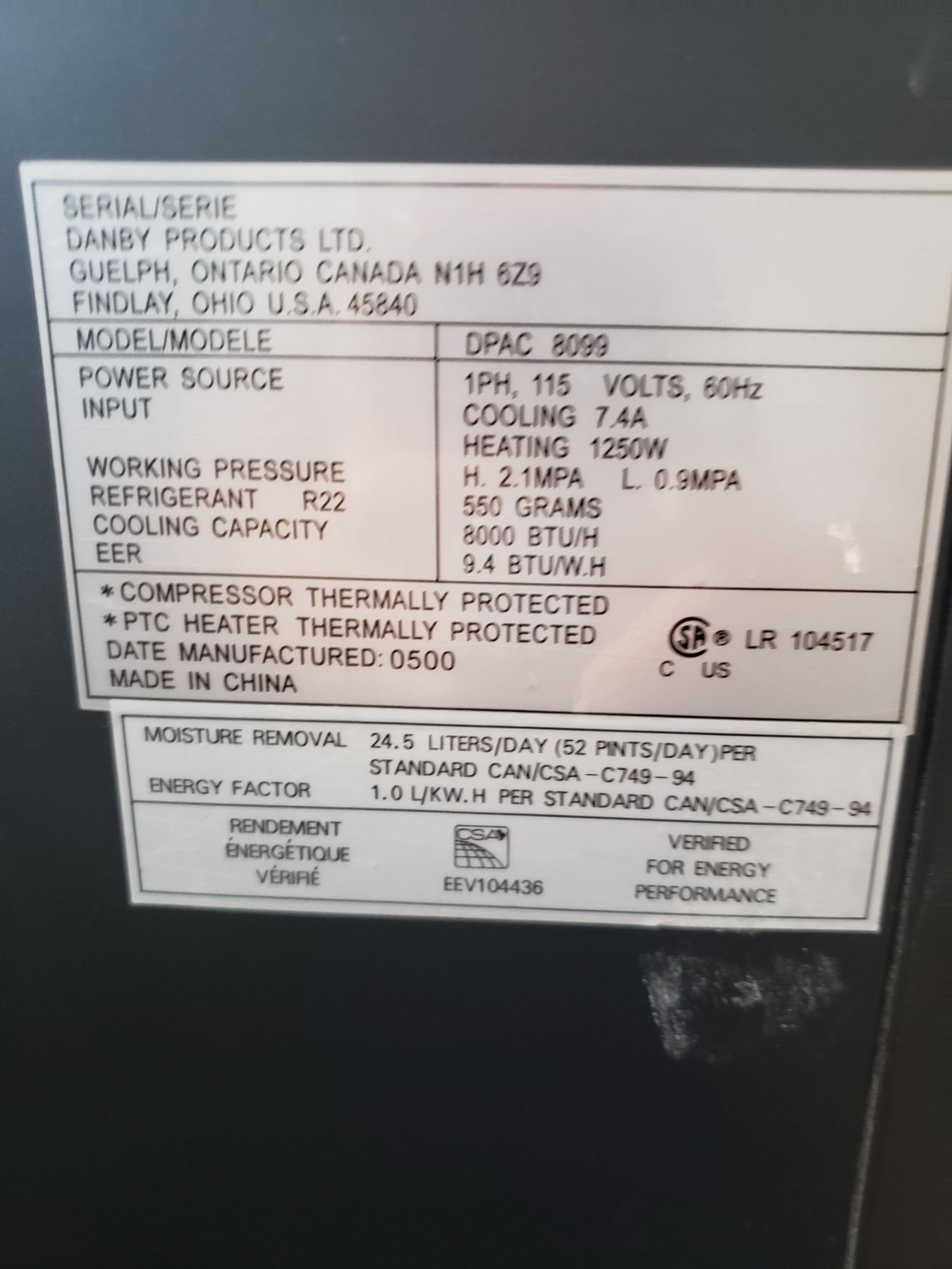 Large Danby air conditioner on wheels, bring help to pickup between 10-11am