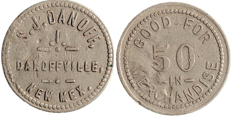 Obverse: S.J. Danoff/ Danoffville / New Mex.; reverse: Good for / 50 / in / Merchandise. Al, 29mm. Fine condition, purchased from Birt 1972.