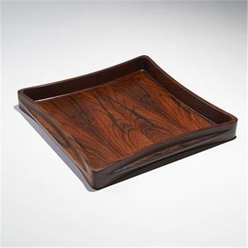 Dansk Designs tray Denmark, c. 1960 rosewood 14.5 w x 14.5 d x 1.75 h inches Signed with impressed mark to underside: [Dansk Desi DN5 Denmark].