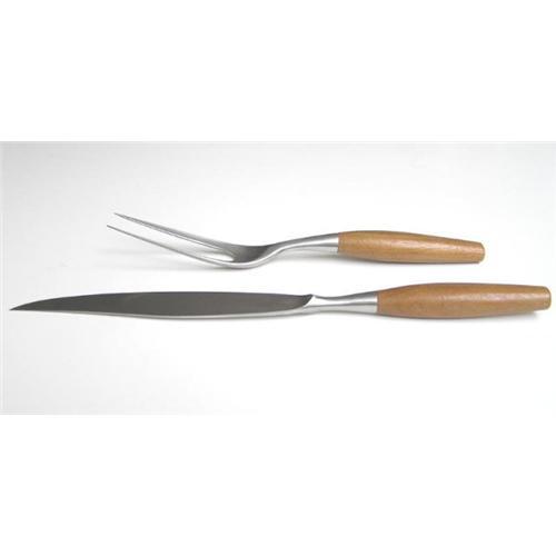 This matching carving knife and serving fork in the Fjord pattern by Dansk are in near mint condition. Teakwood handles with stainless steel. Lengths are 11 and 14 inches respectively. Total weight is 10 oz. Please search our inventory to see our vintage 42-piece Dansk Fjord flatware set.