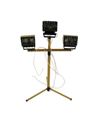 Direct from the Grant McCune Design studio and featured in Dante's Peak (1997) are these yellow and black plastic three light miniature construction flood lights. (approx. 7 1/2" x 5")