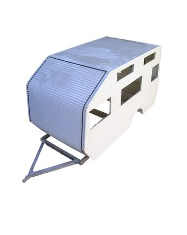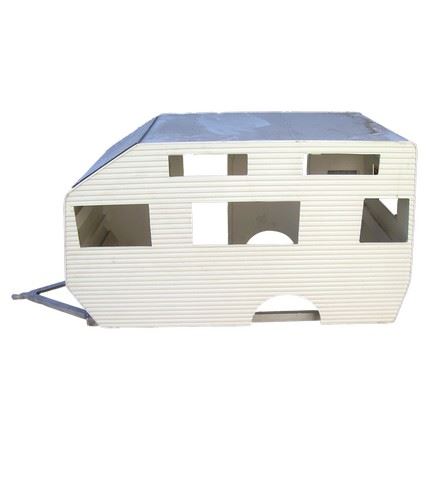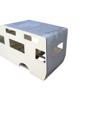 Created and featured on screen in the movie Dante's Peak (1997) is this unfinished white miniature trailer. This was created by the legendary team of Grant McCune Design. Off-white miniature trailer in two pieces. (approx. 34" x15")