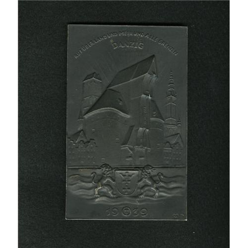 <B>Danzig. Commemorative Iron Plaque, </B></I>this uniface rectangular medal celebrates Christmas in 1939 and the city's incorporation into the Third Reich. The main design features the Marienkirche, reputedly the largest brick church in the world. 141 x 81 mm, UNC.<BR><BR><b>Shipping:</b> Coin/Currency (<a target="_blank" href="http://www.heritageauctions.com/common/shipping.php">view shipping information</a>)