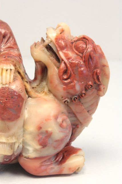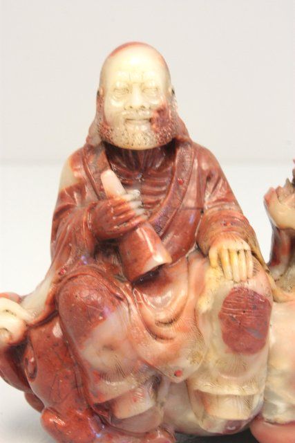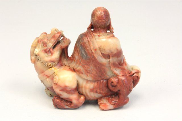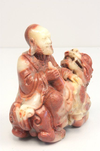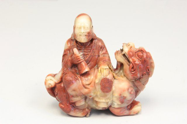 "Monk Riding Mythical Beast". Approx. 5" H x 4.5" W. Please read our terms of sale.