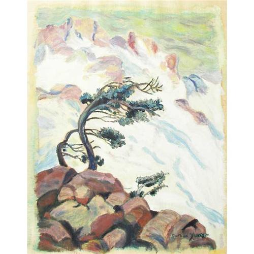 Daphna Marker (1897-1998) Broadmoor Art Academy, Oil on Paper, Trees in Mountain Landscape, 14" x 11", signed lower right