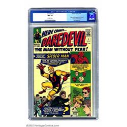 Daredevil #1 (Marvel, 1964) CGC VF+ 8.5 Off-white pages. Key first issue of Daredevil. Daredevil is finally going to get his due with the new big-budget movie coming out next year. Compared to other Marvel keys, this title is relatively undervalued, and this is a striking copy. Overstreet 2002 VF 8.0 value = $1,350. Important notice: We expect to be auctioning lots at the rate of 200-250 per hour. Sometimes eBay Premier live bid software cannot keep up with that pace, so we strongly recommend that you place a realistic proxy bid now as insurance to avoid disappointment. Also please note that all Heritage/CAA lots purchased through eBay Premier carry a 20% Buyer's Premium. Please make sure you read the Terms and Conditions.