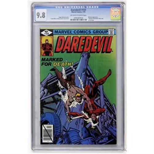 <B>Daredevil #159 (Marvel, 1979) CGC NM/MT 9.8 Off-white to white pages.</B></I> Frank Miller's second issue as artist of the title. Bullseye appearance. "Secrets of Daredevil's billy club" on last page. Overstreet 2007 NM- 9.2 value = $50. CGC census 3/08: 7 in 9.8, none higher. <I> From the Furfferi Collection.</B></I><BR><BR><b>Shipping:</b> Comics - Slabbed (certified) (<a target="_blank" href="http://www.heritageauctions.com/common/shipping.php">view shipping information</a>)
