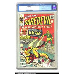 Daredevil #2 (Marvel, 1964) CGC NM- 9.2 Off-white pages. This is one of nicest copies that you could hope to find. The cover colors are so saturated that they almost vibrate. The spine is super tight and the surface is nice and glossy. This issue features the second appearance of Electro, and an early crossover appearance by the Thing. Overstreet 2002 NM 9.4 value = $650. Important notice: We expect to be auctioning lots at the rate of 200-250 per hour. Sometimes eBay Premier live bid software cannot keep up with that pace, so we strongly recommend that you place a realistic proxy bid now as insurance to avoid disappointment. Also please note that all Heritage/CAA lots purchased through eBay Premier carry a 20% Buyer's Premium. Please make sure you read the Terms and Conditions.