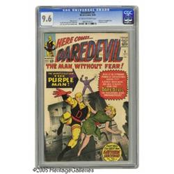 <B>Daredevil #4 (Marvel, 1964) CGC NM+ 9.6 Off-white to white copies.</B></I> Oh, my! What a copy! CGC hasn't awarded a higher grade for this issue to date. Sensational artwork matches the condition, with cover by Jack Kirby and interior by Joe Orlando. The Purple Man's origin and first appearance are here. Overstreet 2004 NM- 9.2 value = $500. CGC census 1/05: 4 in 9.6, none higher. <I>From the Northern Lights Collection</B></I>.