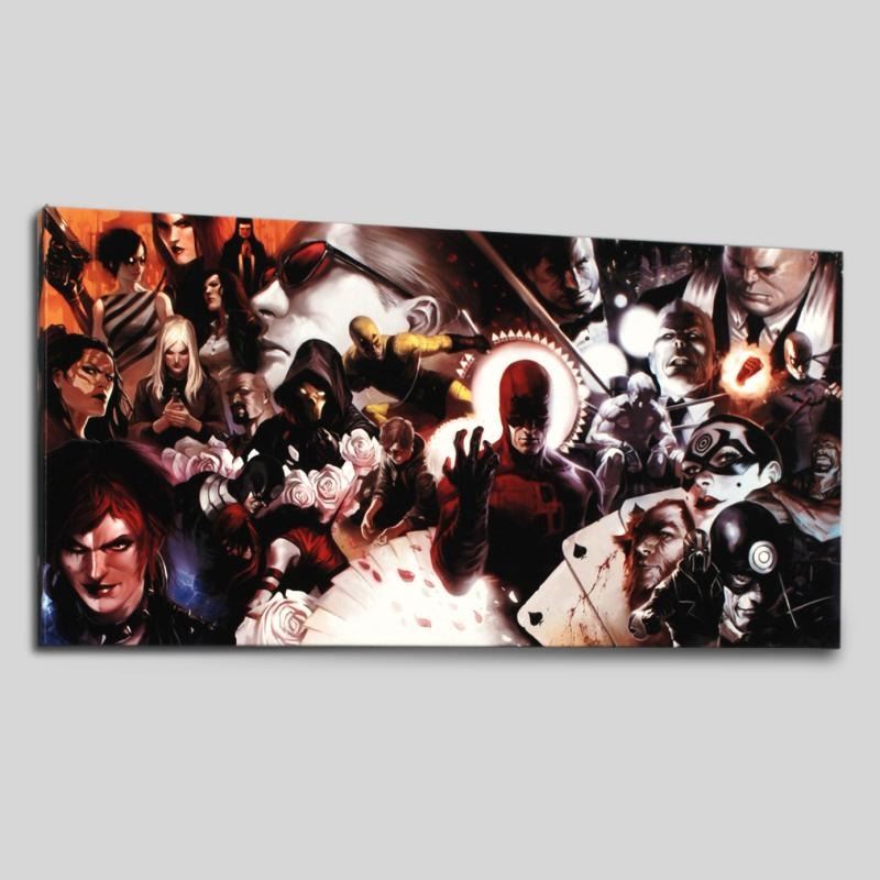 A piece of comic book history, this limited edition, from original art by Marko Djurdjevic, depicts classic characters Daredevil and Kingpin among many others. Marko Djurdjevic was discovered by Marvel after posting a series of re-designs for popular X-Men characters. Marvel then offered Djurdjevic the opportunity to draw covers for some of their popular series, like Spider-Man, Daredevil and Thor. "Daredevil #500" is a limited edition giclee on canvas by Marko Djurdjevic presented by Marvel Comics! This piece comes gallery wrapped and ready to hang. Includes Certificate of Authenticity! Measures approx. 31" x 16" (image). Retail Price $500.00. PRICE INCUDES FREE SHIPPING IN THE U.S. - SHIPPING WILL BE ADDED TO YOUR INVOICE FOR ALL BUYERS OUTSIDE OF THE U.S.