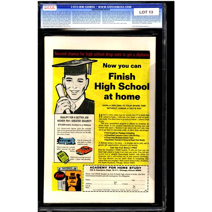Fantastic collection of over 3,000 mostly Silver Age Comics. Over 1,000 CGC graded comics. All comics in this sale are from an origianl owner collection and have never been restored.