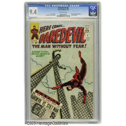 <B>Daredevil #8 (Marvel, 1965) CGC NM 9.4 Off-white pages.</B></I> The Stilt-Man was one of the more bizarre Marvel villains, with his hydraulic stilts making for great visuals -- never more so than with Wally Wood handling art chores as he did here. It's Stilt-Man's origin and first appearance. The cover is also by Wood, and the dialogue (which isn't stilted) is by Stan Lee. Overstreet 2004 NM- 9.2 value = $210. CGC census 1/05: 13 in 9.4, 7 higher. <I>From the Northern Lights Collection.</B></I>