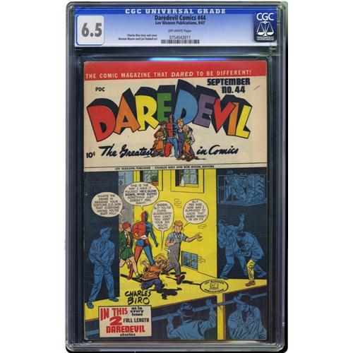 <B>Daredevil Comics #44 (Lev Gleason, 1947) CGC FN+ 6.5 Off-white pages.</B></I> Charles Biro cover. Overstreet 2006 FN 6.0 value = $78; VF 8.0 value = $146. CGC census 2/06: 1 in 6.5, 2 higher. <I>From the Collection of Harold Curtis.</B></I>