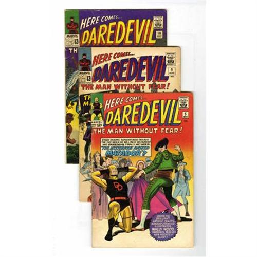 <B>Daredevil Group (Marvel, 1964-66) Condition: Average VG-.</B></I> Includes #5 (minor costume change, Wally Wood art begins), 9, 10, 13 (facts about Ka-Zar's origin, Jack Kirby art), 14, 15, and 17 (Spider-Man crossover). Approximate Overstreet value for group = $200.<BR><BR><b>Shipping:</b> Comics - Unslabbed (<a target="_blank" href="http://www.heritageauctions.com/common/shipping.php">view shipping information</a>)