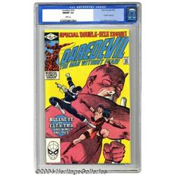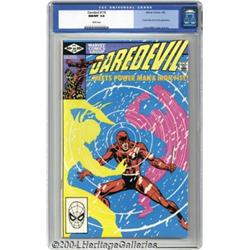 <B>Daredevil Group (Marvel, 1982-88) Condition: Average NM/MT 9.8.</B></I> All comics in this group are CGC NM/MT 9.8 with White pages unless otherwise noted. The group includes #178, #179 (off-white to white pages), #180, #181 (Death of Elektra), #183 (off-white to white pages), #196 (Wolverine appearance), #238 (NM+ 9.6) and #252 (NM+ 9.6). All have Frank Miller art except for the last three issues, which were penciled by Klaus Janson, Sal Buscema, and John Romita Jr., respectively. Overstreet 2004 NM- 9.2 value for group = $110. 8 Comic Books <BR><BR><B>Important notice:</B> Heritage usually auctions material at the rate of 200-250 lots per hour. On some occasions eBay Live bid software or the Internet may not be able to keep up with the pace of the auction. We recommend placing a realistic absentee bid now as insurance to avoid disappointment. Occasionally the auctioneer may eliminate or reject an eBay Live bid, and the auctioneer may also reopen a lot after the close of the eBay live bidding (usually because we missed an audience bid), and may reject your bid even if it shows you as the winning bidder. By bidding via eBay Live, you agree that Heritage may award the lot to another bidder at its sole discretion under the circumstances described above or any other reasonable circumstances. Since eBay bids are not shown to us until we open the lot on the floor, we treat those bids just like floor bids. In most cases the floor responds before the eBay bid is presented to us, due to Internet lag time, so for consistency we have made it a policy that floor bids are always considered first over tie eBay live bids. Also please note that all Heritage lots purchased through eBay Live carry a 20% Buyer's Premium. Please make sure you read the Terms and Conditions before you bid. </span></font></tr></table></td></tr></table>