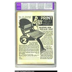 Daring Mystery Comics #3 (Timely, 1940) CGC Apparent VG+ 4.5 Extensive (A) Cream to off-white pages. This Timely title is generally a little tougher to find than others, which makes this Alex Schomburg Nazi war cover even more enticing. Joe Simon contributes story art. The Photo-Journal Guide to Comic Books rates this issue "scarce", and CGC's listing only four other copies of #3 in its census, to date, would seem to agree. CGC notes, "Restoration includes: color touch, pieces added, tear seals, cleaned, reinforced." Overstreet 2003 GD 2.0 value = $482; VG 4.0 value = $640. Important notice: Heritage usually auctions material at the rate of 200-250 lots per hour. On some occasions eBay Live bid software or the Internet may not be able to keep up with the pace of the auction. We recommend placing a realistic absentee bid now as insurance to avoid disappointment. Occasionally the auctioneer may eliminate or reject an eBay Live bid, and the auctioneer may also reopen a lot after the close of the eBay live bidding (usually because we missed an audience bid), and may reject your bid even if it shows you as the winning bidder. By bidding via eBay Live, you agree that Heritage may award the lot to another bidder at its sole discretion under the circumstances described above or any other reasonable circumstances. Also please note that all Heritage lots purchased through eBay Live carry a 20% Buyer's Premium. Please make sure you read the Terms and Conditions before you bid.