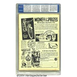 Daring Mystery Comics #4 (Timely, 1940) CGC FN 6.0 Cream to off-white pages. Dan Gorman, "America's Ace G-Man," attempts to stop a gang of weird gold thieves on this fantastic example of Alex Schomburg's early work, before he developed his signature style of "busy covers." It's trivial, but still interesting to note that this is the only non-superhero-themed cover for this series. The Purple Mask makes his last appearance and Whirlwind Carter begins. This is a great example of an early Timely comic, packed with a wide variety of features. There are currently only two copies of this issue that have been graded higher by CGC. Overstreet 2003 FN 6.0 value = $960. Important notice: Heritage usually auctions material at the rate of 200-250 lots per hour. On some occasions eBay Live bid software or the Internet may not be able to keep up with the pace of the auction. We recommend placing a realistic absentee bid now as insurance to avoid disappointment. Occasionally the auctioneer may eliminate or reject an eBay Live bid, and the auctioneer may also reopen a lot after the close of the eBay live bidding (usually because we missed an audience bid), and may reject your bid even if it shows you as the winning bidder. By bidding via eBay Live, you agree that Heritage may award the lot to another bidder at its sole discretion under the circumstances described above or any other reasonable circumstances. Since eBay bids are not shown to us until we open the lot on the floor, we treat those bids just like floor bids. In most cases the floor responds before the eBay bid is presented to us, due to Internet lag time, so for consistency we have made it a policy that floor bids are always considered first over tie eBay live bids. Also please note that all Heritage lots purchased through eBay Live carry a 20% Buyer's Premium. Please make sure you read the Terms and Conditions before you bid.