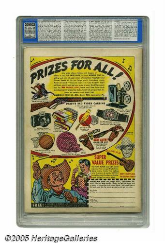 50. Auctioneer offers no opinion as to the validity of a grade assigned by any third-party grading service. Since we cannot examine C.G.A. encapsulated notes or Comics Guaranty Corporation (CGC) encapsulated comics, they are sold "as is" without our grading opinion, and may not be returned for any reason. Auctioneer shall not be liable for any patent or latent defect or controversy pertaining to or arising from any encapsulated collectible. In any such instance, purchaser's remedy, if any, shall be solely against the certification service certifying the collectible.