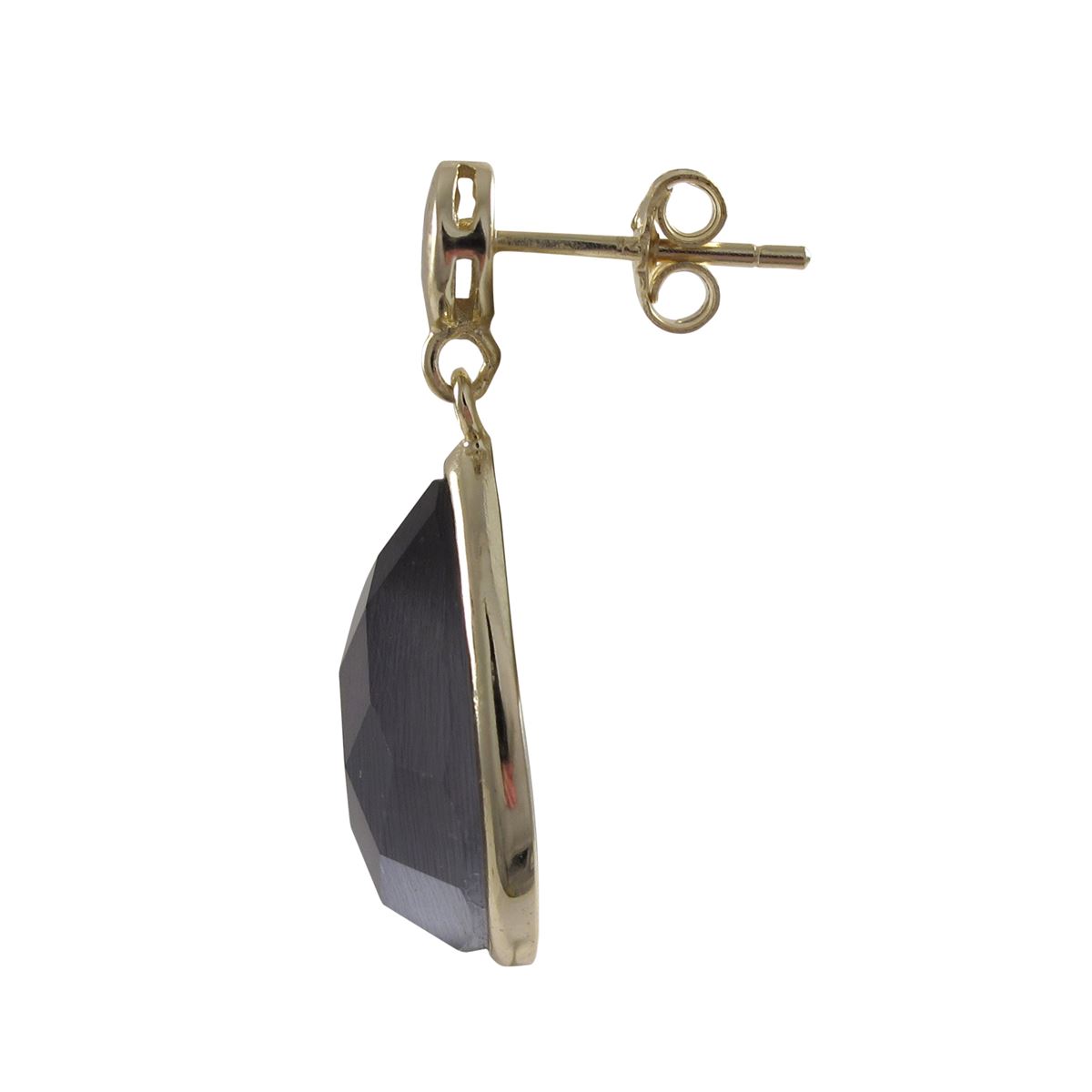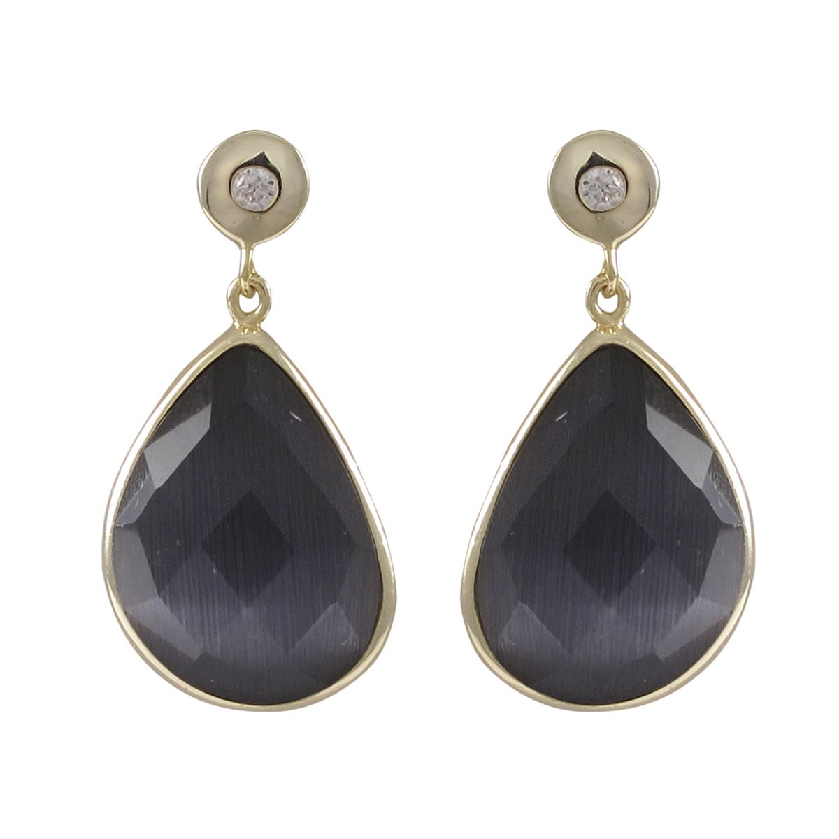 Dark Amy Cat's Eye Semi Precious Faceted Stone On Gold Plated Sterling Silver Post Earrings, 1.10