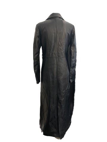 Dark Angel (TV) Max Guevera (Jessica Alba) test, black leather duster coat with inside and outside pockets. Coat is stained slightly on the botton right from use on set.