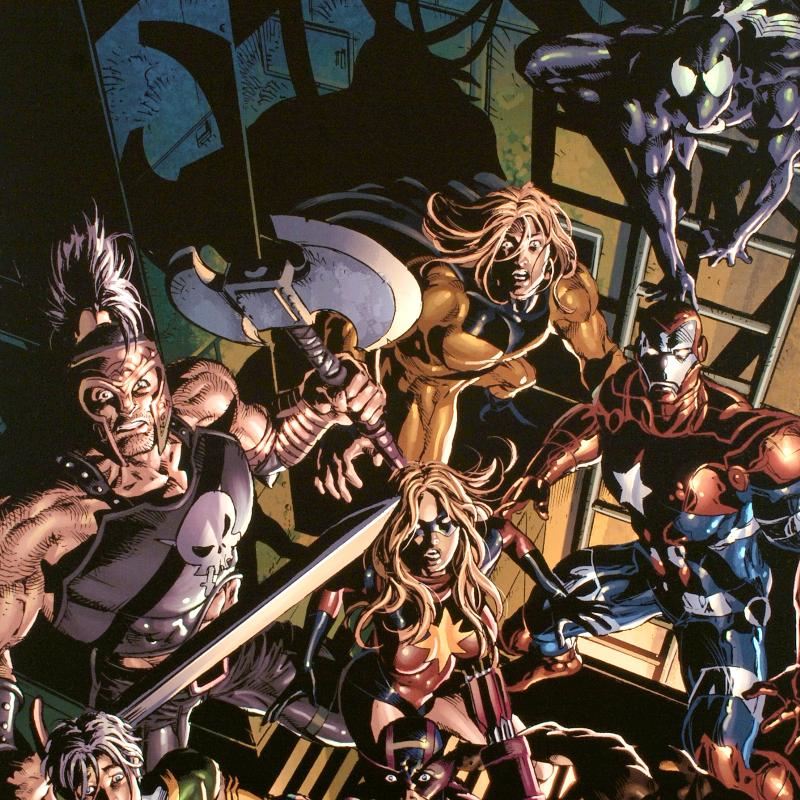 A piece of comic book history, this limited edition, from original art by Mike Deodato Jr., depicts dark avengers Hawkeye, Wolverine, Ms. Marvel, Ares, Sentry, Spider-Man, Marvel Boy, and Iron Patriot. Brazilian artist Mike Deodato Jr. has become an enduring fan favorite, working in styles ranging from wildly energetic cartooning to moody photorealism. Deodato became one of the decade's most prolific and in-demand artists, including Marvel credits such as Avengers, Elektra, Incredible Hulk, Spider-Man and Thor. "Dark Avengers #10" is a limited edition giclee on canvas by Mike Deodato Jr. presented by Marvel Comics, numbered and hand signed by the great Stan Lee! Includes Certificate of Authenticity! Measures approx. 18" x 27" (image).