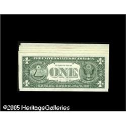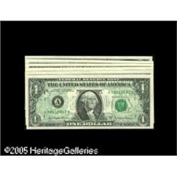 <B>Dark Back to Face Offset Denomination Set,</B></I> including the following FRNs - 1977A Boston $1 <B>AU,</B></I> 1977 Chicago $5 <B>CU,</B></I> with smudging on back, 1993 Atlanta $10 <B>Choice CU,</B></I> 1990 New York $20 <B>CU,</B></I> with red ink along top center edge, 1985 New York $50 <B>Choice CU,</B></I> and Atlanta 1977 $100 <B>Choice CU.</B></I> The offset is dark on each note in this grouping, thus producing a dramatic effect.<BR> 6 notes Lot:15319