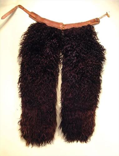 Dark Brown Wooly Chaps, size for young adult, no maker mark. Very good condition. 33 inches long.