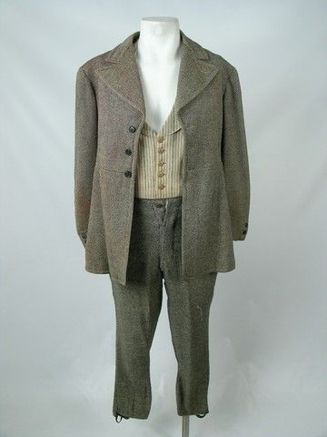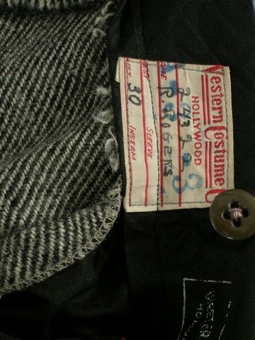 Before the legendary Roy Rogers became "King of the Cowboys", and a true American icon, he was a young actor, who usually played "good guys". An interesting deeper leveled character was in "Dark Command" (1940) a movie he cherished for the rest of his life, especially for the chance to act with John Wayne. This is his hero worn outfit, including pants, vest and jacket. The pants and vest are seen in many scenes in the first two-thirds of the film, and the Jacket is worn near the beginning of the film during the big street fight. An interesting side note about the jacket: the back has a bullet hole above the right shoulder blade. In the movie, Rogers goes from being a sweet innocent, to a murderer, to a renegade, to a hero. In one of the last sequences he saves John Wayne and is shot in the back while on a buckboard. Supposedly, the sequence was originally shot on the main street with Rogers in that jacket, and thus the bullet hole and blood were created. However the director felt the sequence wasn't exciting enough, and quickly reshot it with the big chase and shootout, with Rogers wearing a Confederate "long coat" instead.