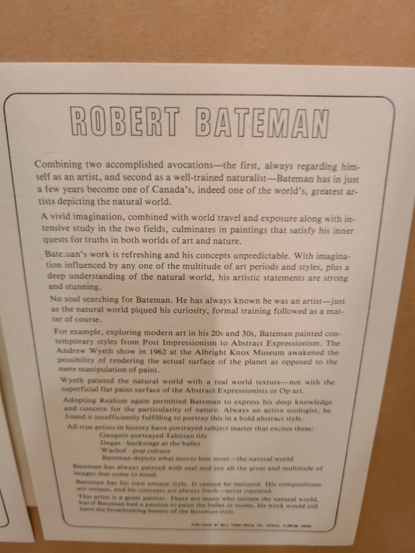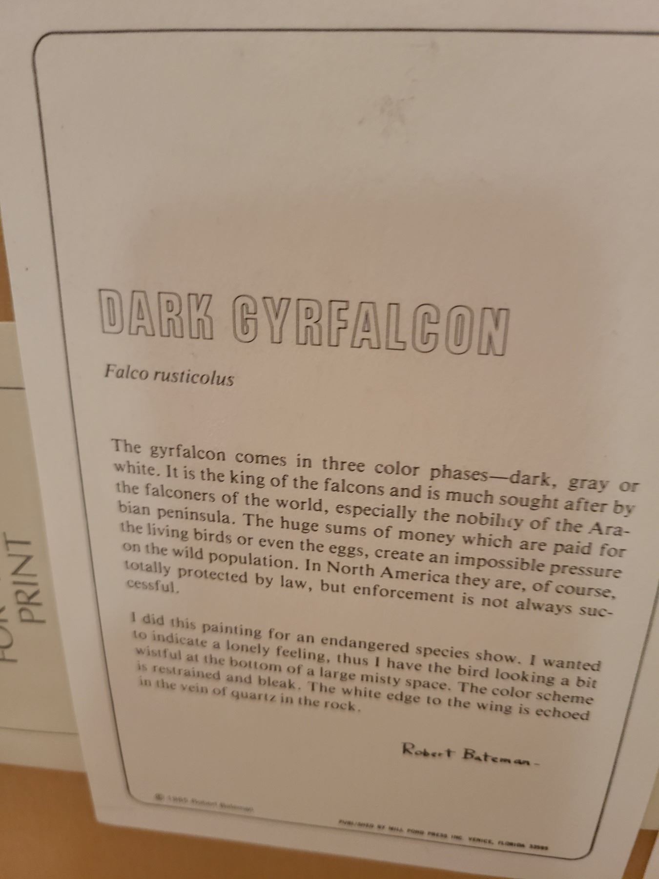 Dark Gyrfalcon by Robert Bateman 28x36 with Certificate. Pickup at 9 am.