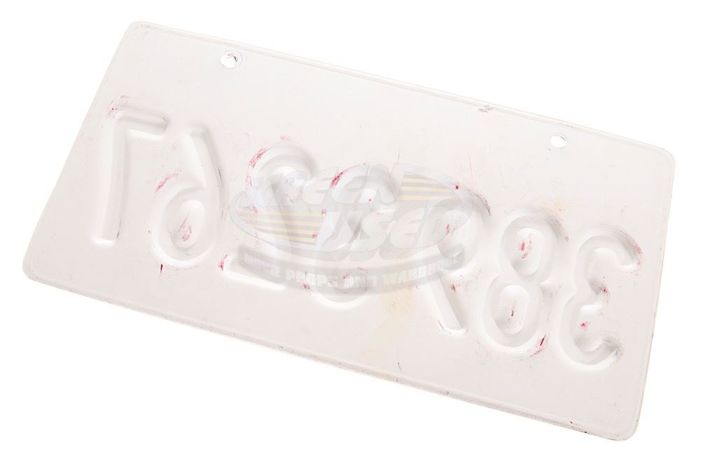 (Warner Bros., 2012) This prop license plate was custom-made by the production for use on various vehicles during filming. The plate is made of vacu-formed plastic and features raised numbers over the Gotham City crest. Minor wear from use is present.