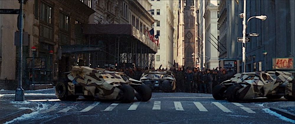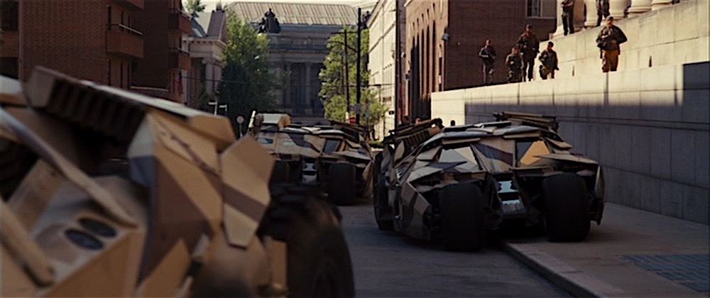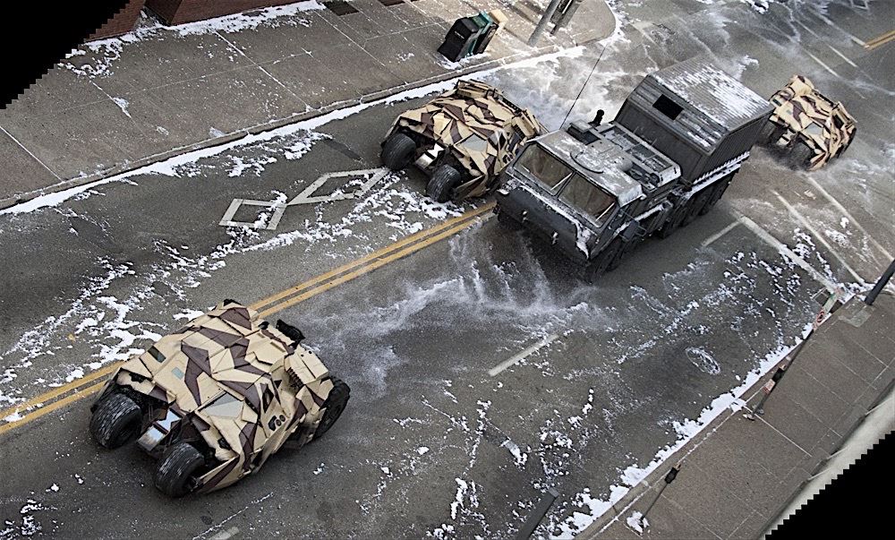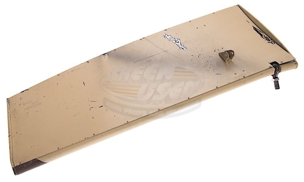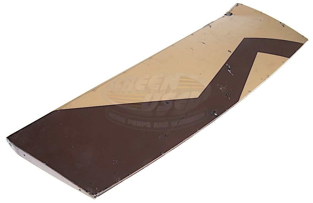 (Warner Bros., 2012) This Tumbler wing was custom-made by the production for use on the "Command" Tumbler that was flipped and exploded during the chase at the end of the film. The wing is made of metal and features the desert camouflage paint scheme. The wing was removed from the vehicle after filming and has minor wear from use. Measures 37" x 13" x 2.5".