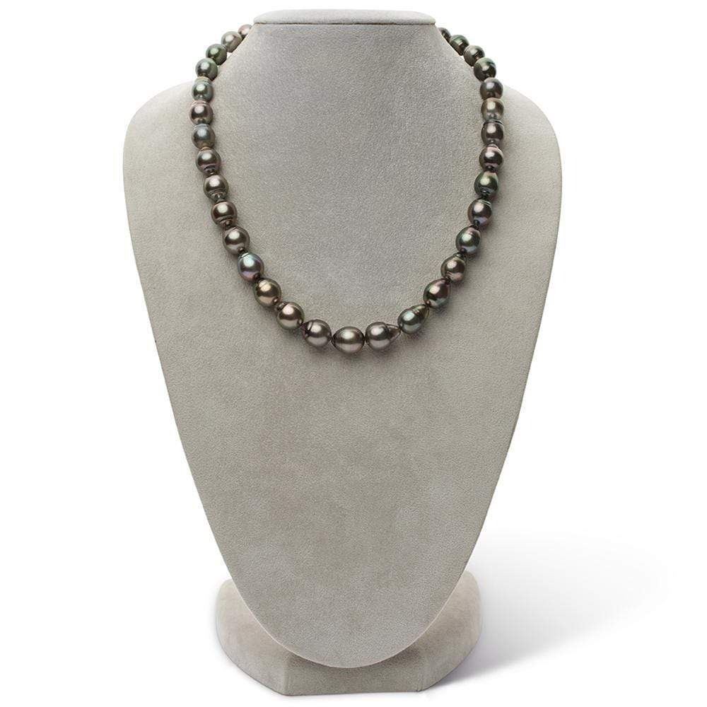 Dark Peacock and Cherry Drop-Shaped Baroque Tahitian Pearl Necklace, 18", 9.1-11.0mm, AA+/AAA Qualit